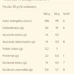 Ingredientes: Amido de milho, farinha de arroz, açúcar demerara, gordura de palma, leite de coco, óleo de girassol, adoçante maltitol, fécula de batata, coco ralado, fibra de inulina e acácia, emulsificantes: lecitina de soja, goma xantana, mono e diglicerídeos de ácidos graxos, manteiga de cacau, sal, agentes de crescimento: fermento químico, bicarbonato de amônio e bicarbonato de sódio, aromatizante sintético idêntico ao natural e antioxidante natural extrato de alecrim.