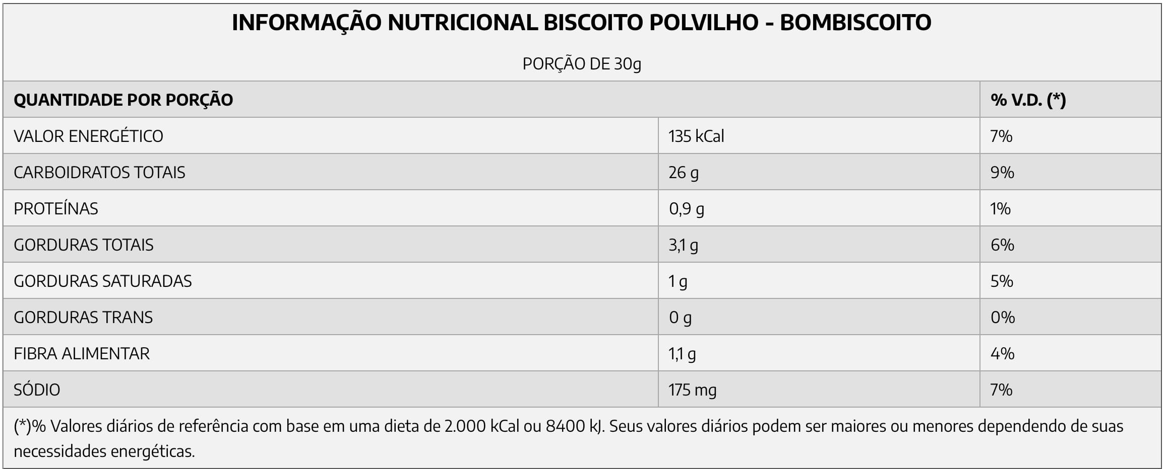 Ingredientes: Polvilho azedo, Amidos, Gordura Vegetal, Sal Refinado, Ovo Integral desidratado.