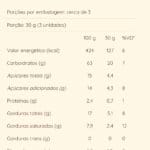 Ingredientes: Amido de milho, açúcar, farinha de arroz, gordura vegetal, leite de coco, edulcorante maltitol, fibras inulina e acácia, cacau alcalino, gema de ovo, manteiga de cacau, , leite de coco, edulcorante maltitol, fibras inulina e acácia, cacau alcalino, gema de ovo, manteiga de cacau, emulsificantes lecitina de soja, mono e diglicerídeos de ácidos graxos e goma xantana, sal, agentes de crescimento (bicarbonato de sódio, fermento químico e bicarbonato de amônio), antioxidante natural extrato de alecrim e aromatizantes sintéticos idênticos aos naturais sabor baunilha e cacau.