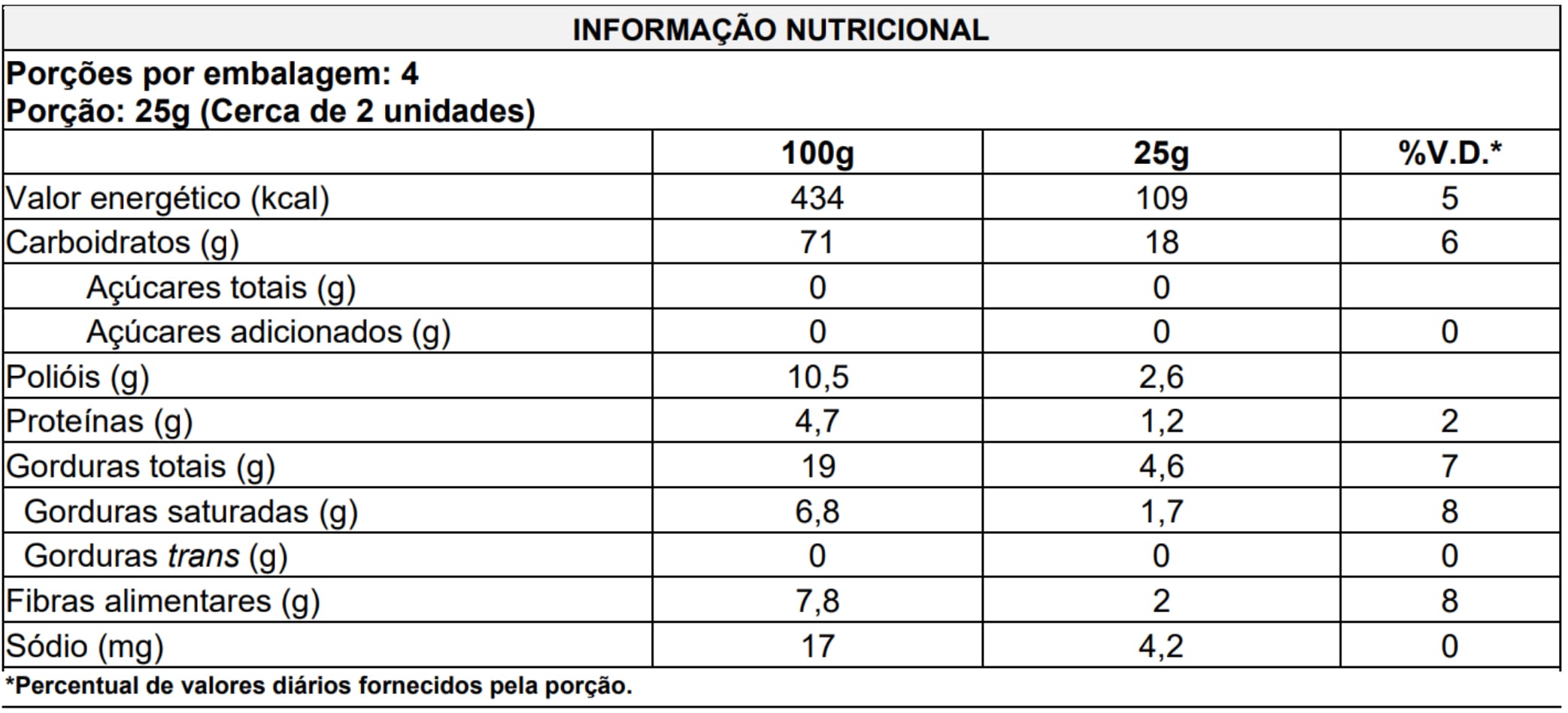 lecitina de girassol, aromas naturais de baunilha e pistache) e amêndoa.