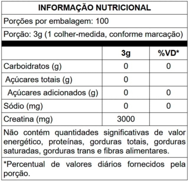 Ingredientes: Creatina mono-hidratada e micronizada.