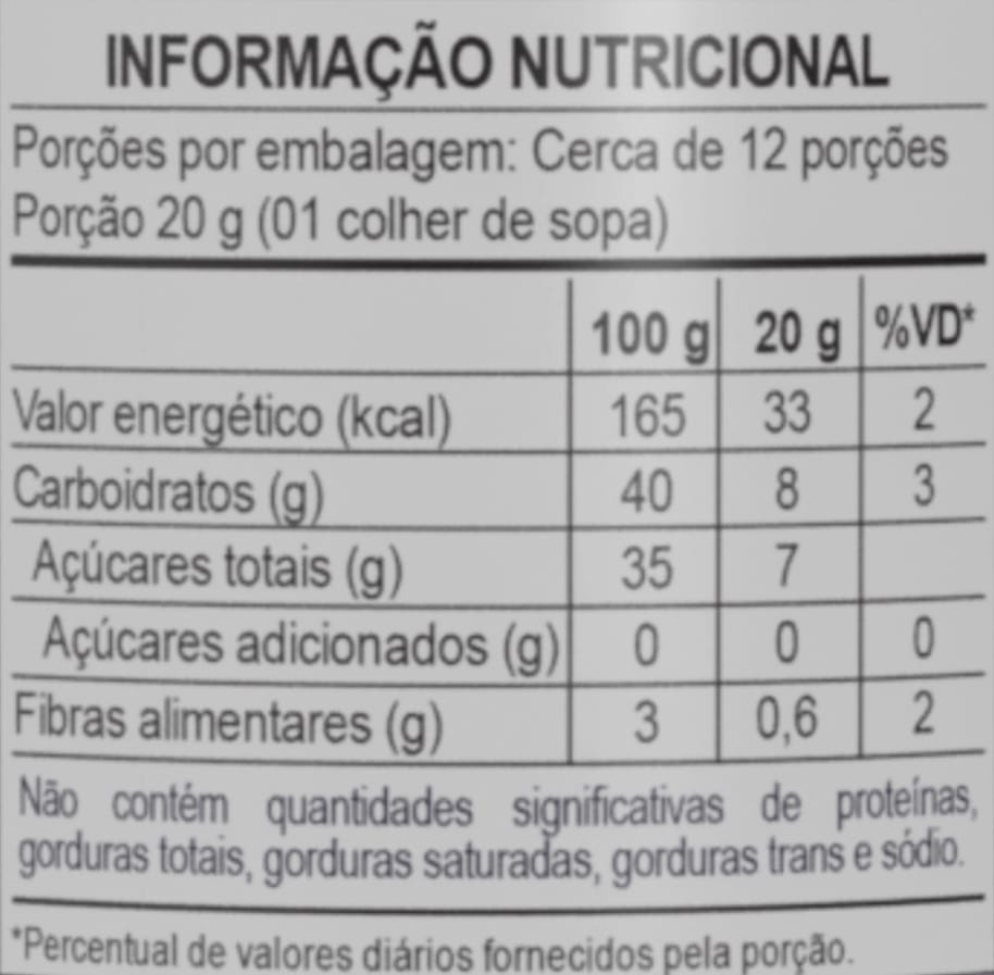 Ingredientes: Mix de frutas vermelhas (morango, amora, mirtilo e framboesa), suco concentrado de maçã, sucos concentrados de maçã, pera e tâmara e estabilizante pectina.