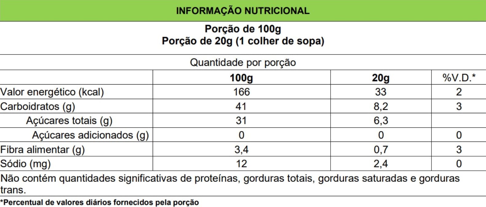 Ingredientes: Polpa de goiaba, goiaba, sucos concentrado de maçã, pera e tâmara, polidextrose e estabilizante pectina cítrica.