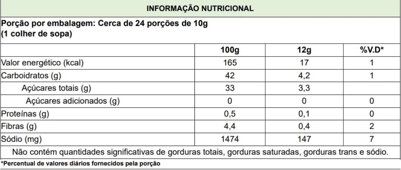 Ingredientes: Calda de tâmara, molho de soja, água, amido modificado de mandioca e vinagre.
