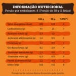 Ingredientes: Amido de milho, amido modificado de mandioca, óleo vegetal, farinha de mandioquinha, farinha de cenoura, açúcar, gema, sal, conservadores propionato de cálcio e ácido sórbico, estabilizantes hidroxipropilmetilcelulose e goma xantana, emulsificante mono e diglicerídeo de ácidos graxos.