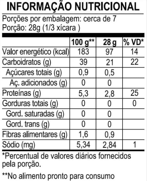 Ingredientes: Farinha de trigo enriquecida com ferro e ácido fólico, tomate desidratado, espinafre desidratado e cúrcuma.