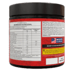 Ingredientes: Beta Alanina, L-Arginina, Taurina , Colostro Bovino em Pó, Cafeína, Cisteína, L-Tirosina, N-Acetil L-Metionina, Ácido Ascórbico, Extrato de café verde, Extrato seco de semente de uva, Alga Chondrus Crispus Invernal, Bisglicinato de Magnésio, Zindo Aspartato, Vitamina B6 (Cloridrato de Piridoxina), Aroma Idêntico ao Natural de Frutas Vermelhas, Corante Vermelho de Beterraba, Acidulante ácido Cítrico, Edulcorante Sucralose.