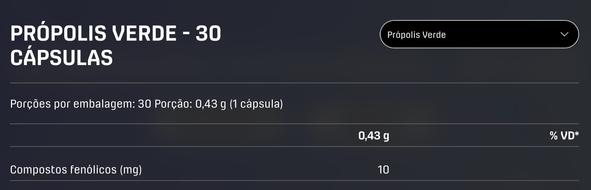 A Própolis verde é um tipo de própolis, conhecida por suas propriedades antioxidantes, anti-inflamatórias, antimicrobianas e imunomoduladoras. Além dos flavonoides e compostos fenólicos, a própolis apresenta uma abundância de aminoácidos e ajuda a fortalecer o sistema imunológico e a saúde geral.