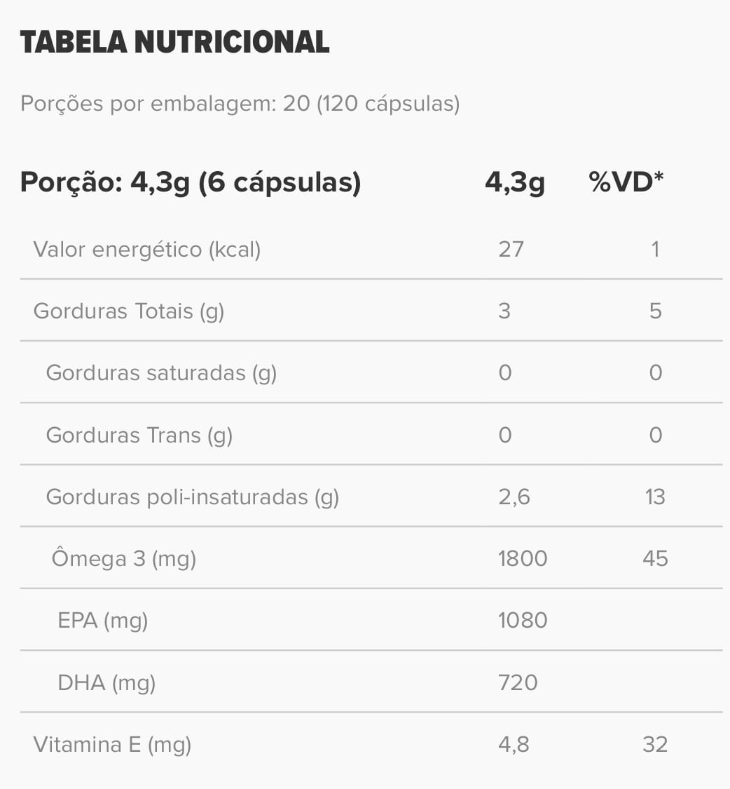 Ingredientes: Óleo de peixe (Pronova Pure® ômega-3 TG) e D-alfa-tocoferol. Composição da cápsula: gelatina, água purificada e umectante glicerina.